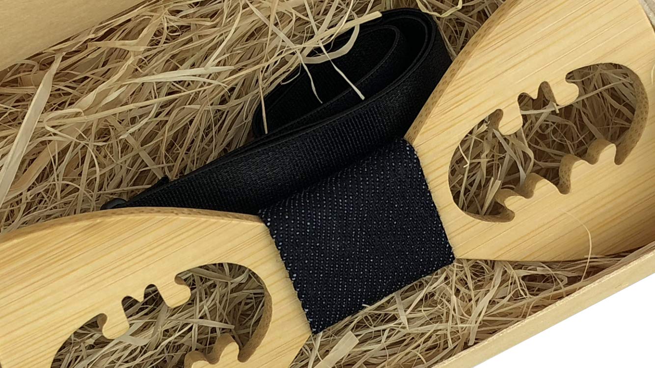 Lelio & friends Designer-Holzfliege, handgearbeitet in einer edlen Holzschachtel, ein extravaganter Hingucker im legendären Batman-Design!